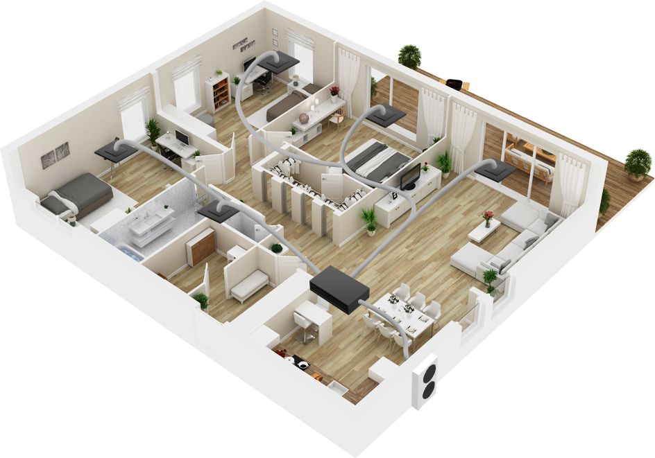Обеспечивает приток чистого воздуха, удаляя отработанный загрезненный воздух. Это решение максимально способствует обеспечению омфорта и сохранению здоровья. Может состоять из более чем 11 наименований оборудования и узлов